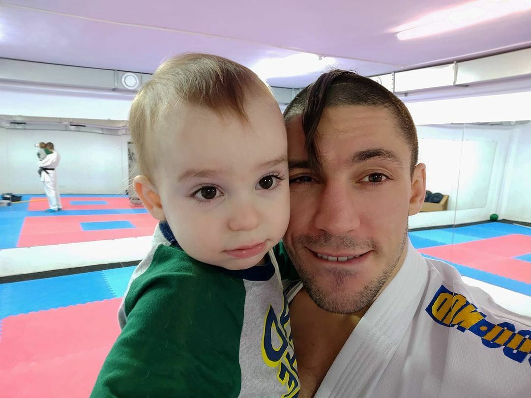 Двухлетний сын каратиста Горуны во время пресс-конференции в аэропорту попросился к отцу на руки. Видео