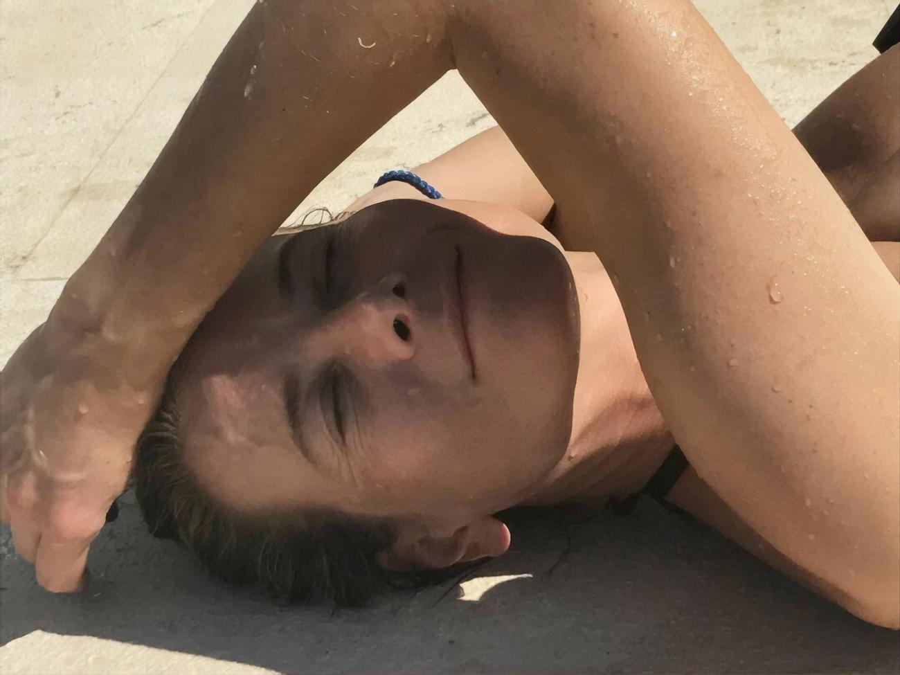 Телеведущая предстала в раздельном купальнике. Она выбрала модель бикини с низкой посадкой плавок.