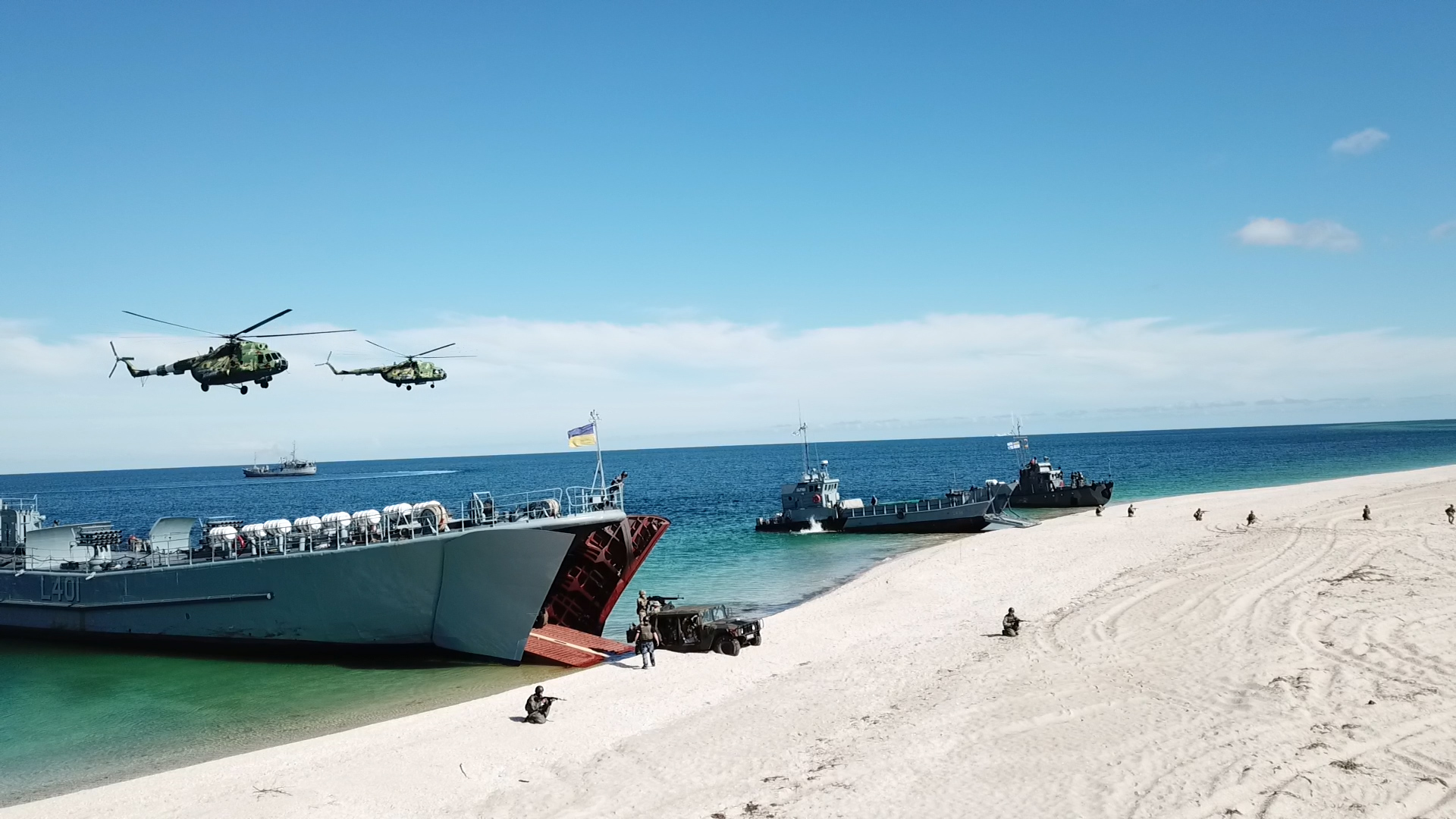В Черном море состоялись тактические учения корабельной десантной группы украинских ВМС с участием дивизиона надводных кораблей, авиации и морских пехотинцев.