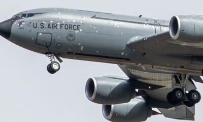 Військовий літак США KC-135 у слідах від шрапнелі