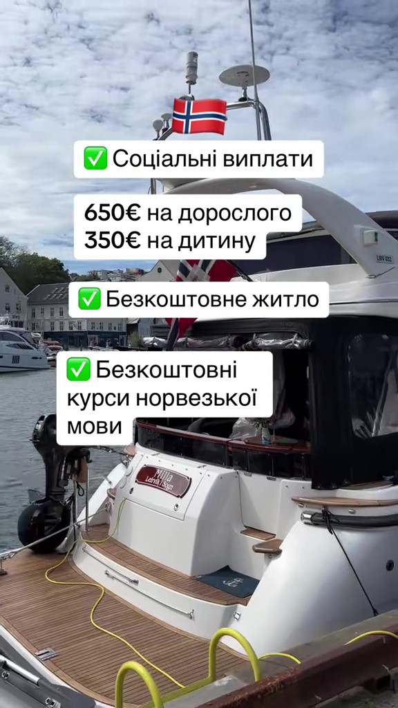“Ця країна надає фінансову підтримку в розмірі 650 євро на дорослого, 350 євро — на дитину. Також безплатне житло, курси норвезької мови (за це платять 1700 євро на особу), але в такому випадку оренду житла потрібно сплачувати самостійно. Безплатні садочки, але школи потрібно оплачувати самостійно. Хоча є випадки, коли сплачує комуна. Окрім того, безплатна медицина, хоча інколи дорослим доводиться вносити свій відсоток за послугу. Допомагають з офіційним працевлаштуванням та гуманітарною допомогою”, — додає дівчина.