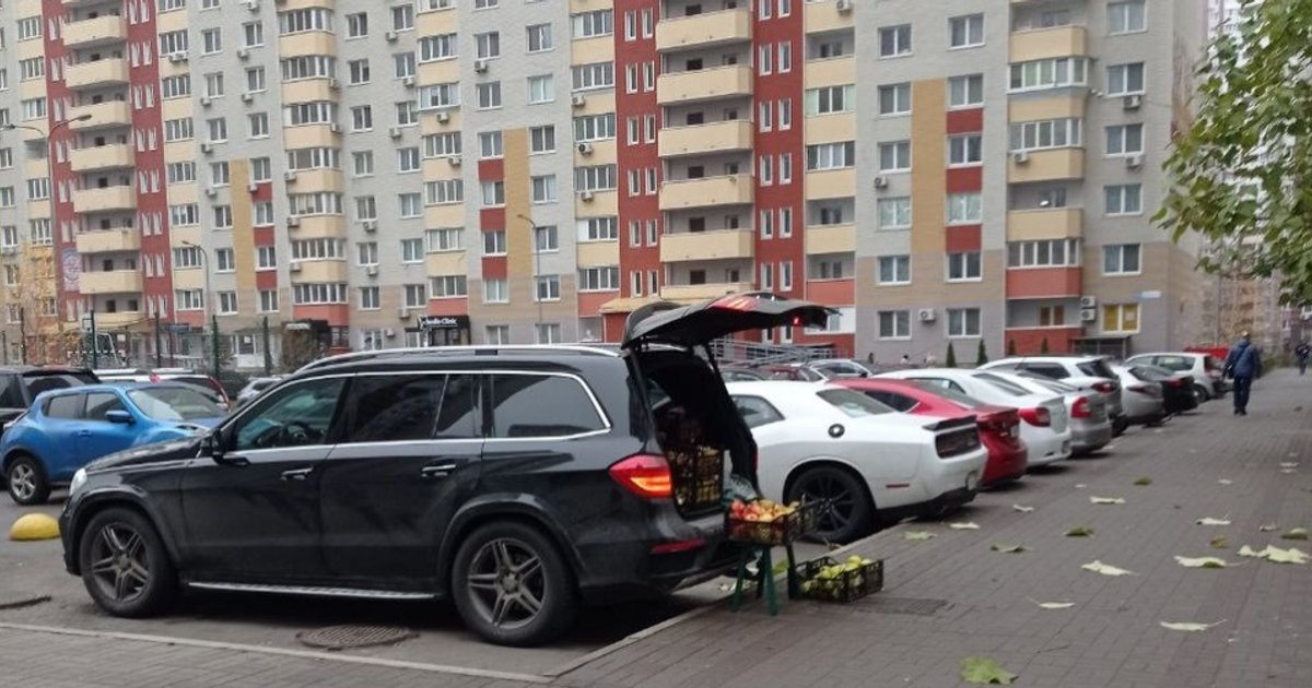 У Києві продавали яблука з багажника Mercedes GLS — фото