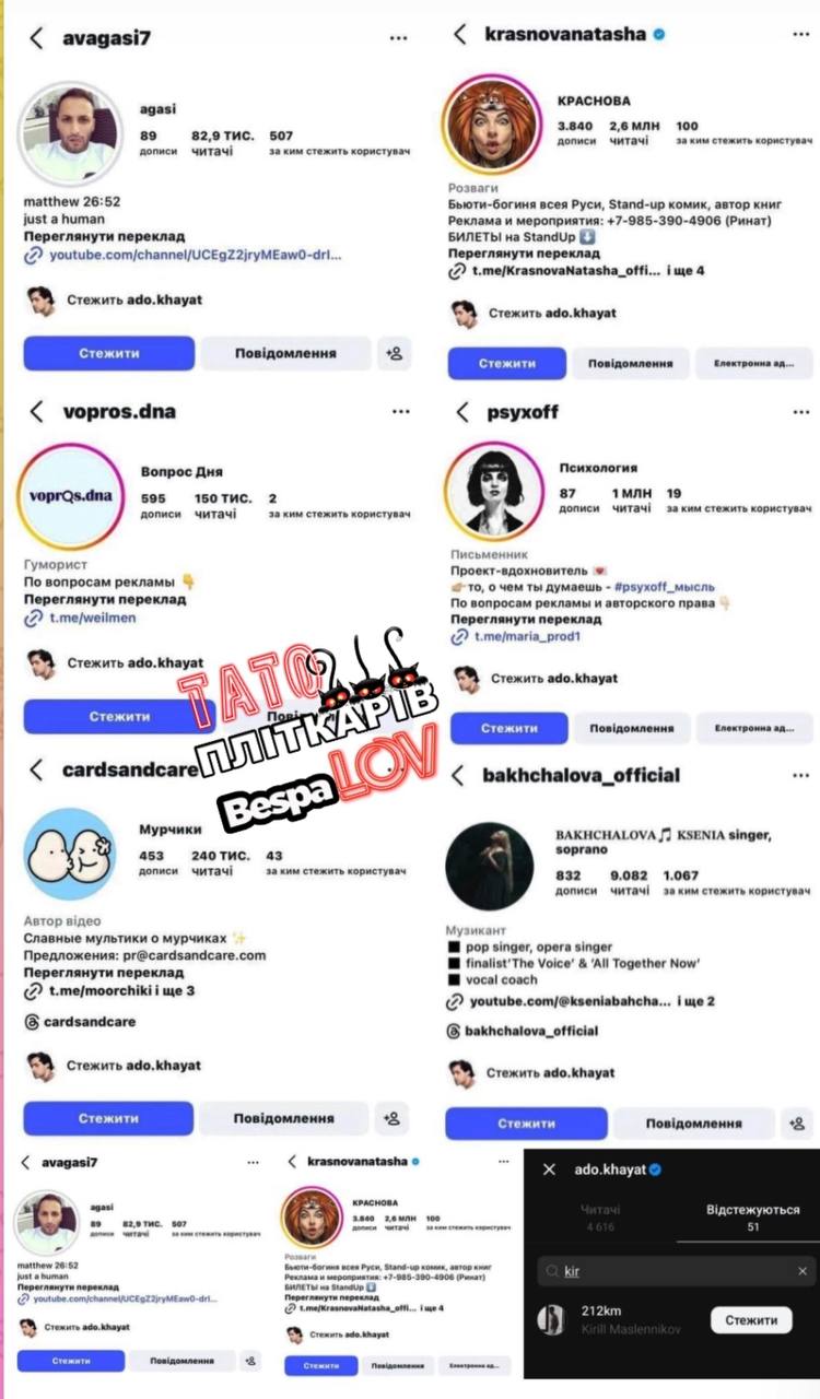 Напередодні оголошення 10-го фіналіста конкурсу блогер-пліткар Богдан Беспалов у своєму Telegram-каналі показав скріншоти, які свідчать про те, що співак був підписаний на низку російських акаунтів в Instagram.