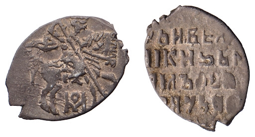Перші копійки взагалі звались “дєньга” (московська дєньга – 1/200 рубля, новгородська дєньга – 1/100) – це данина іншим батькам російської державності – ординцям, бо приблизно так в Улусі Джучі називали гроші (оригінальна назва – данг), а їхня назва походить від арабських срібних дирхемів.