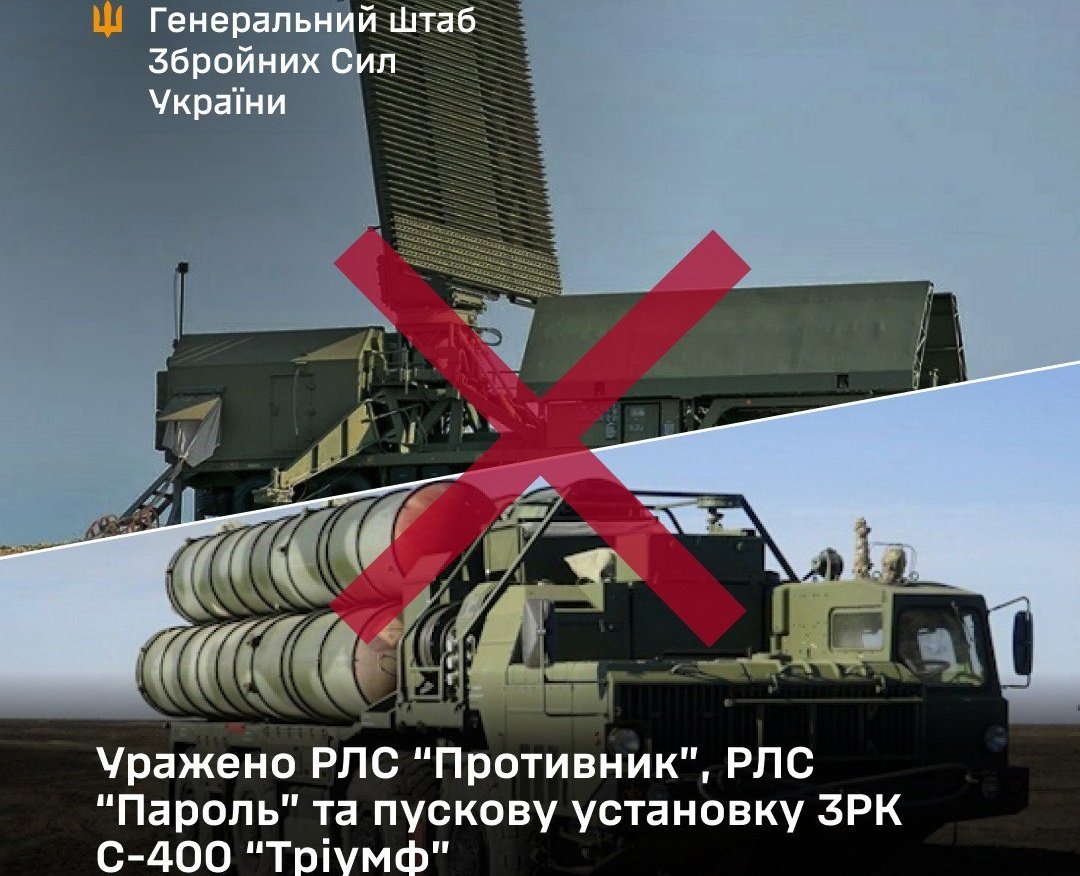 Крім того, зафіксовано ураження пускової установки зі складу зенітного ракетного комплексу С-400 “Тріумф” поблизу населеного пункту Дальнє на тимчасово окупованій території Автономної Республіки Крим.