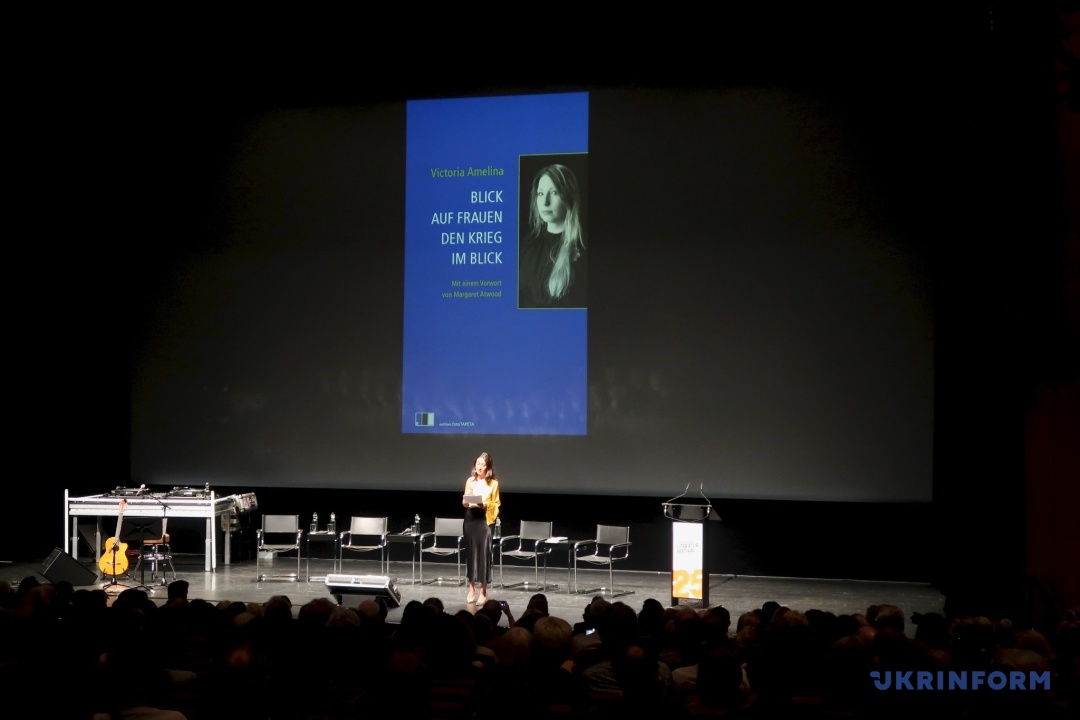 Як передавав Укрінформ, вечір був організований на полях Берлінського міжнародного літературного фестивалю. Фестиваль акцентував на українській письменниці Вікторії Амеліній, вбитої російською ракетою у 2023 році. Уривки з її книжки «Погляд жінок. У центрі уваги війна», надрукованої посмертно, читала на заході акторка, володарка численних нагород, зокрема «Срібного ведмедя» на Берлінале та Німецької кінопремії Марен Еггерт.