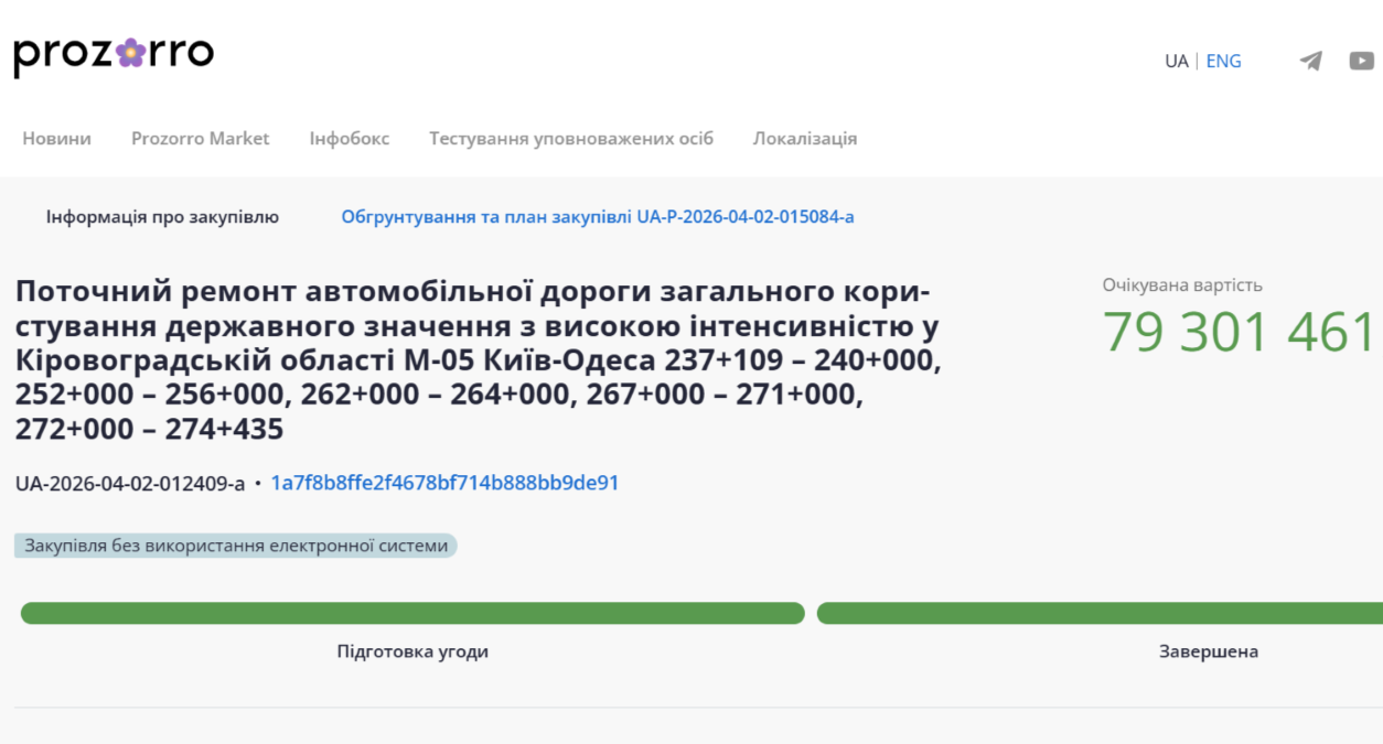Відповідне оголошення оприлюднене в системі електронних закупівель Prozorro.