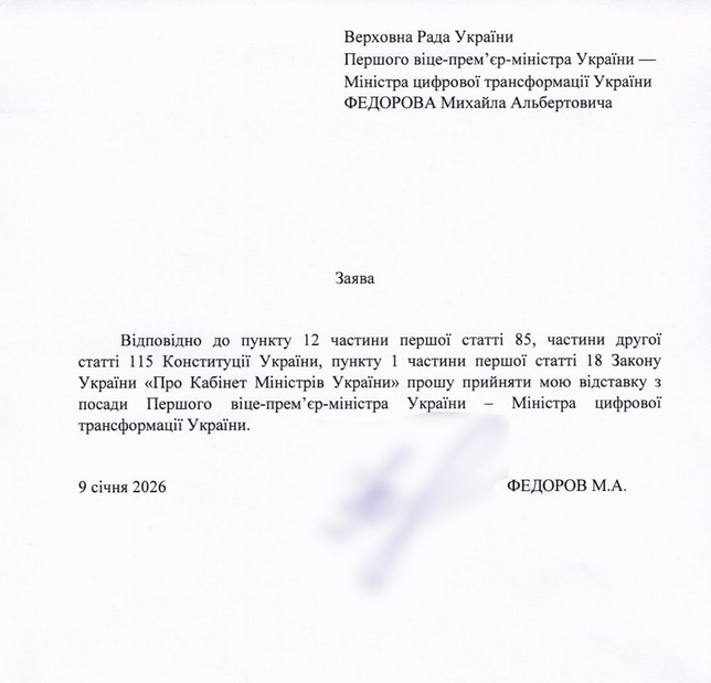 Заява про відставку Михайла Федорова