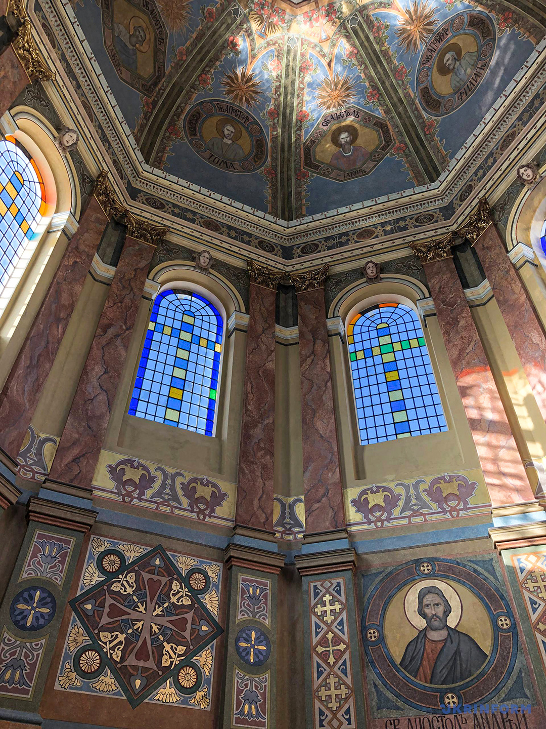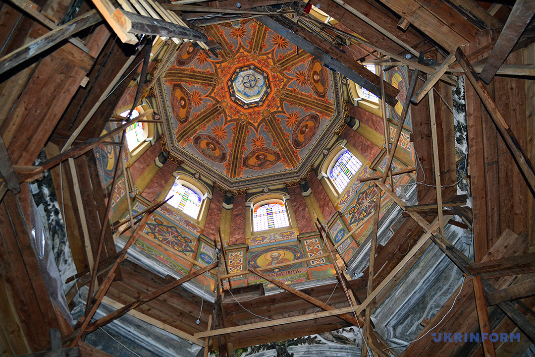 Команда вже завершила реставрацію купольної частини храму. Її площа – майже 400 квадратних метрів. Робота тільки з тонування тривала майже сім місяців, а загалом – понад три роки. Тепер відвідувачі храму зможуть побачити відновлену композицію «Зіслання Святого Духа на апостолів».