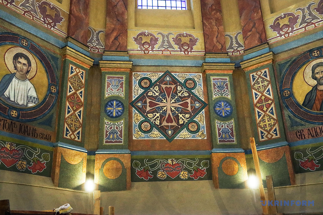 – У 1900–1903 роках чеський майстер Оліва прикрасив фасади та інтер’єр ліпниною – витонченими рококовими й сецесійними орнаментами. Він же створив неороманський іконостас і кивот. Його декори вражають тонкістю виконання і вишуканістю стилю. До 1915 року стіни храму оздобили стінописами у стилі сецесії з акцентом на національних традиціях, поєднуючи з елементами неовізантійського східного мистецтва, – додав реставратор.