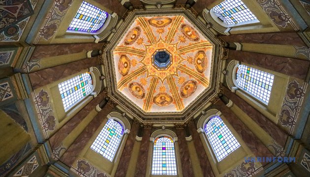 Команда вже завершила реставрацію купольної частини храму. Її площа – майже 400 квадратних метрів. Робота тільки з тонування тривала майже сім місяців, а загалом – понад три роки. Тепер відвідувачі храму зможуть побачити відновлену композицію «Зіслання Святого Духа на апостолів».