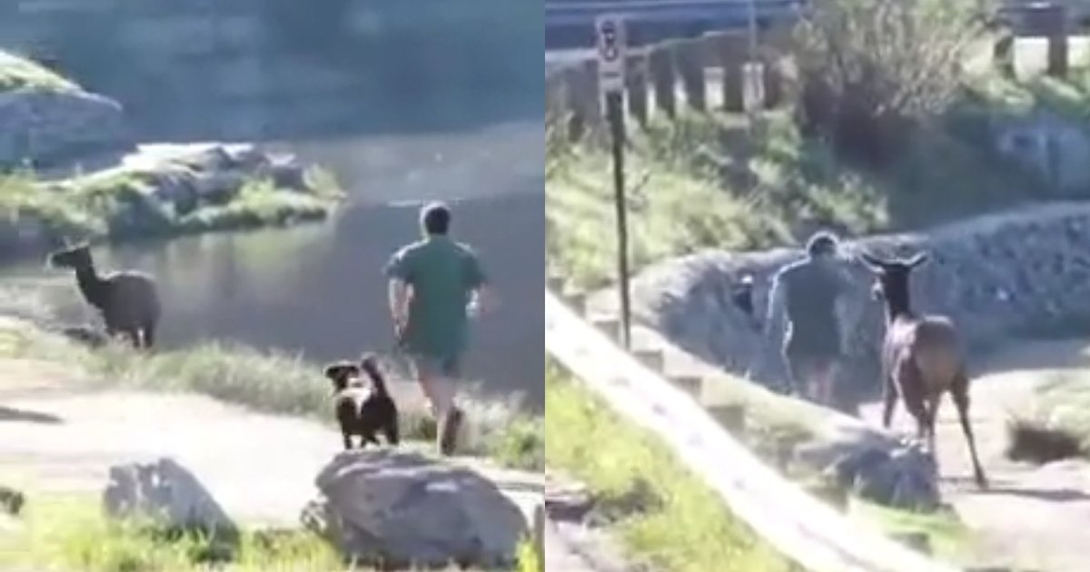 Один американець опинився в курйозній ситуації під час пробіжки вздовж озера зі своїм собакою. За кілька секунд олень побачив бігунів і вирішив долучитися, а реакція чоловіка на “переслідувача” розсмішила мережу.
