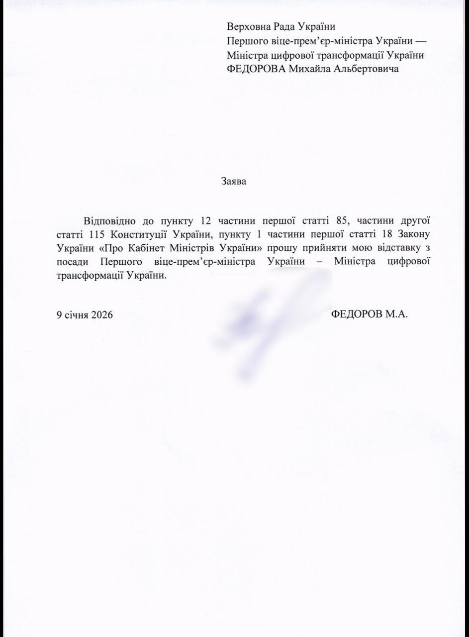 Заява про відставку Михайла Федорова