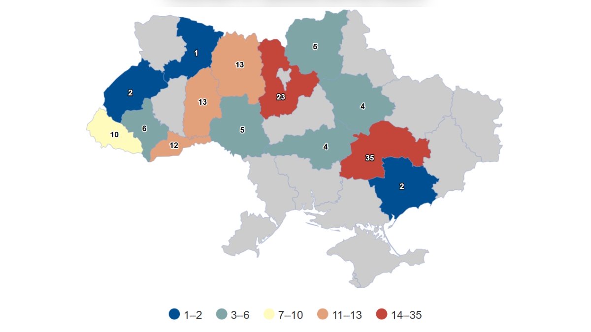 Найбільше позовів подано у Дніпропетровській області — 35 справ, що становить понад чверть від загальної кількості. Далі йдуть Київська область із 23 справами, а також Хмельницька та Житомирська області — по 13 у кожній.