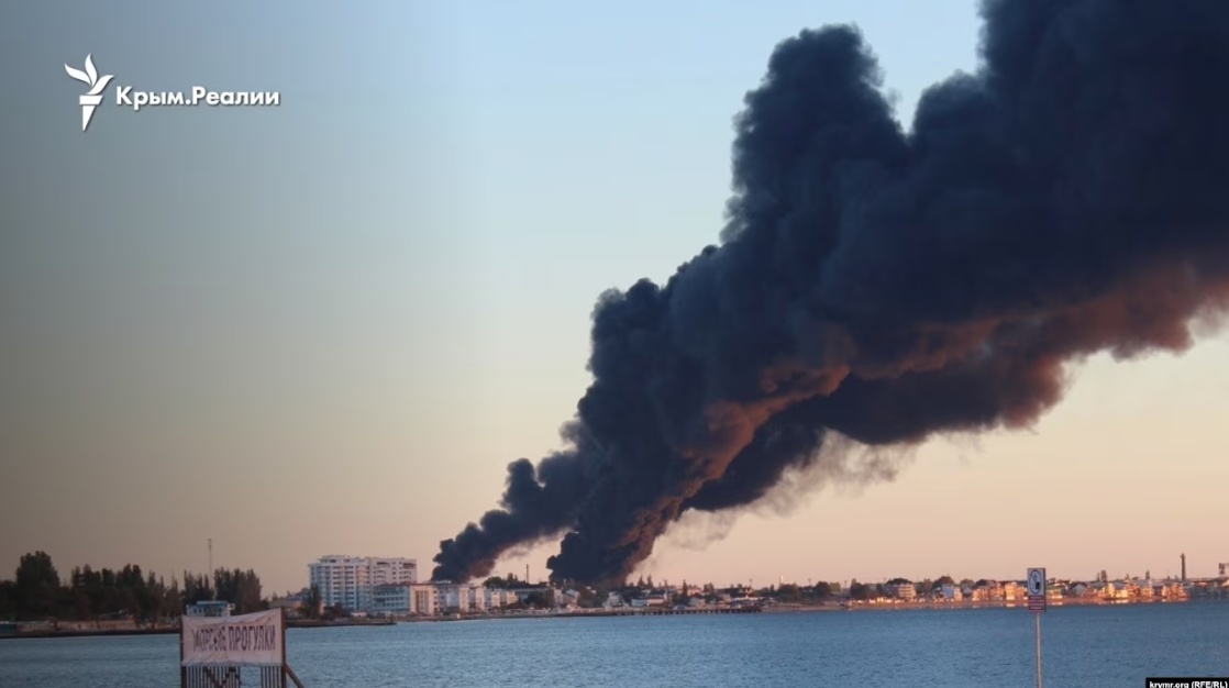 На тимчасово окупованій Феодосійській нафтобазі пожежа, спричинена ударом 6 жовтня, посилюється та охоплює нові ємності з пальним. Внаслідок цього густий дим та гарь огорнули місто та навколишні населені пункти.