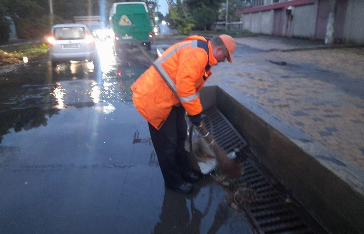 Комунальні служби Одеси продовжують роботи з очищення дощоприймачів, зупинкових комплексів та закріплених територій для ліквідації наслідків негоди, яка вирувала в місті 30 вересня.