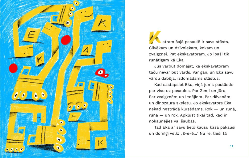 Книжку “Ekskavatora Ekas e-e-ēstāsti” надрукувало відоме латвійське видавництво Liels un mazs у перекладі Мари Польякової.