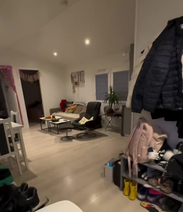 “Просто шикарно, сучасно взагалі! Приємно, як то кажуть. Всередині будинок ось так виглядає, наче студія. Кухня, тут одна спальня, тут інша. Велика кімната. Є санвузол, туалет”, — проводить чоловік екскурсію соціальним житлом.