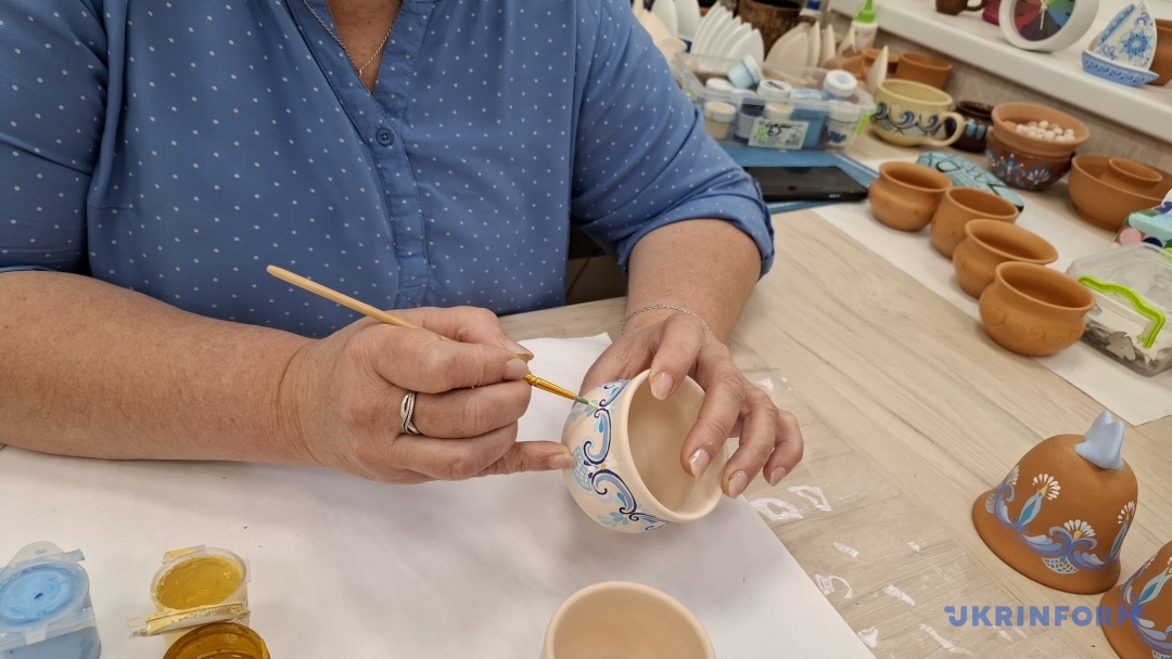 … Ми зустрічаємося з пані Любою в майстерні «таврійського розпису». Тут не лише розписують уже готові вироби, а й створюють їх. Очі розбігаються від різноманітної кераміки: чашок, підсвічників, тарелів, сувенірів. А спостерігати за вправними рухами майстрині можна годинами.
