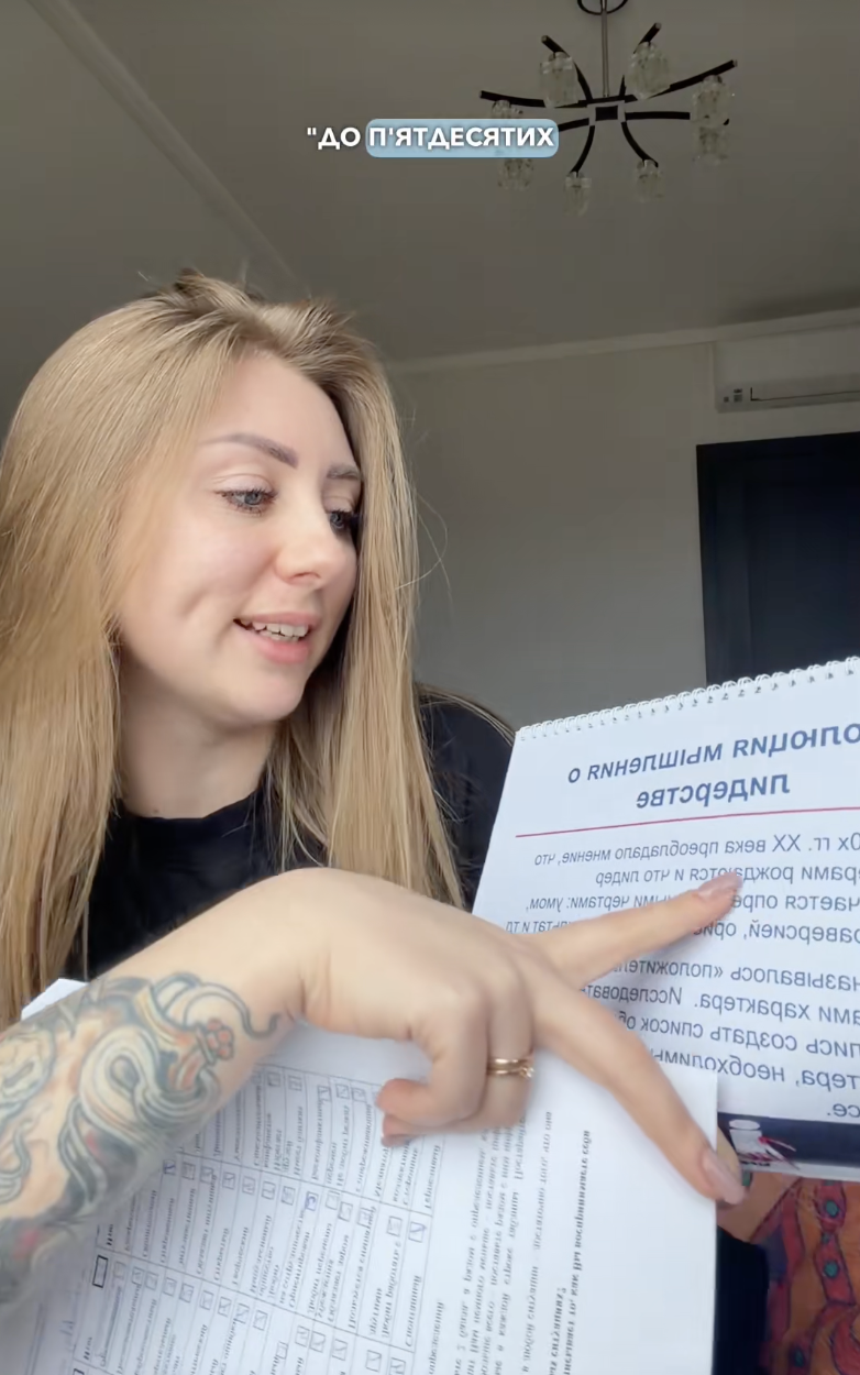 “А працювати за професією я не планувала з того моменту, як отримала диплом. Попалась мені вакансія. Максимально розпливчаста. Менеджер з продажів. Хороша зарплата плюс підходящий мені графік”, — каже авторка відео.